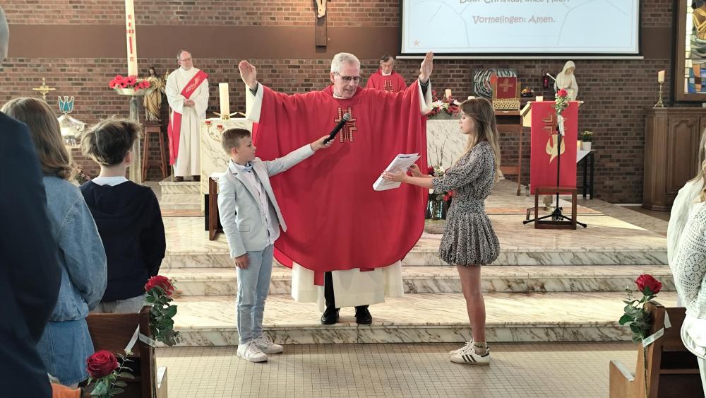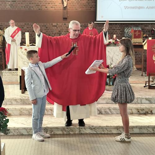 Op zondag 26 april ontvingen 27 jongeren uit onze pastorale eenheid uit handen van vicaris Bart Coenegrachts het sacrament van het Heilige Vormsel. Als gezant en helper van bisschop Patrick Hoogmartens  waren onze medewerk(st)ers en catechisten zeer vereerd met zijn aanwezigheid.